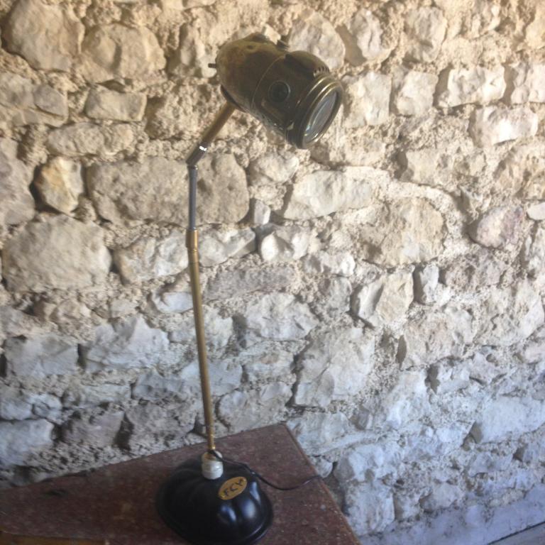 Lampe réalisée à partir d'un phare acétylène des années 1930 de marque LUXOR 2 petits témoins...
