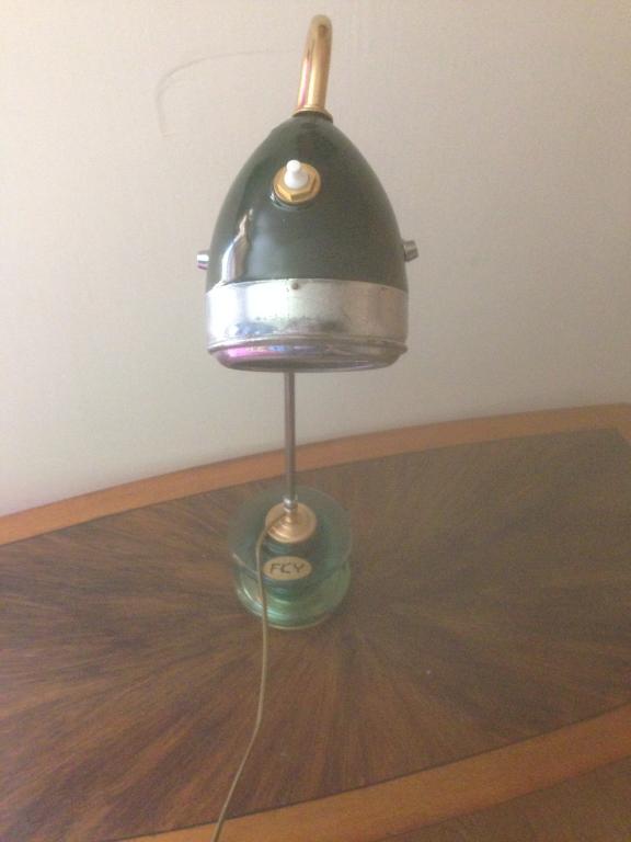 Phare de vélos des années 50 peint en vert gazon. le socle set fait d'un isolateur électrique....