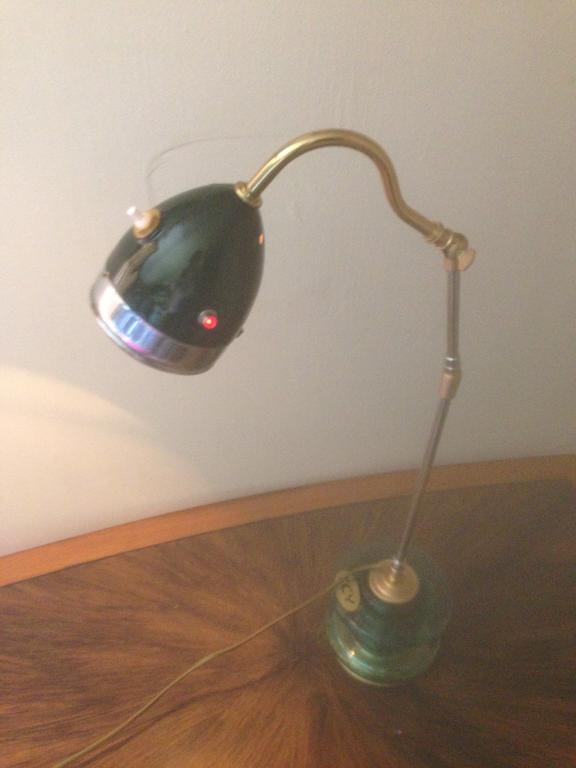Phare de vélos des années 50 peint en vert gazon. le socle set fait d'un isolateur électrique.