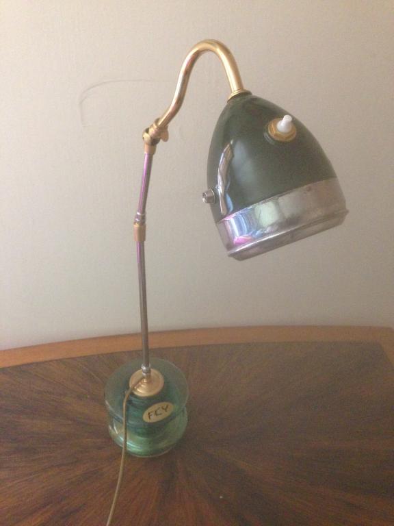 Phare de vélos des années 50 peint en vert gazon. le socle set fait d'un isolateur électrique.