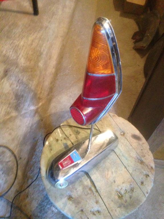 Lampe réalisée à partir d'un feu arrière de Simca Versailles des années 50/60. le socle est un cache réservoir de mobylette...