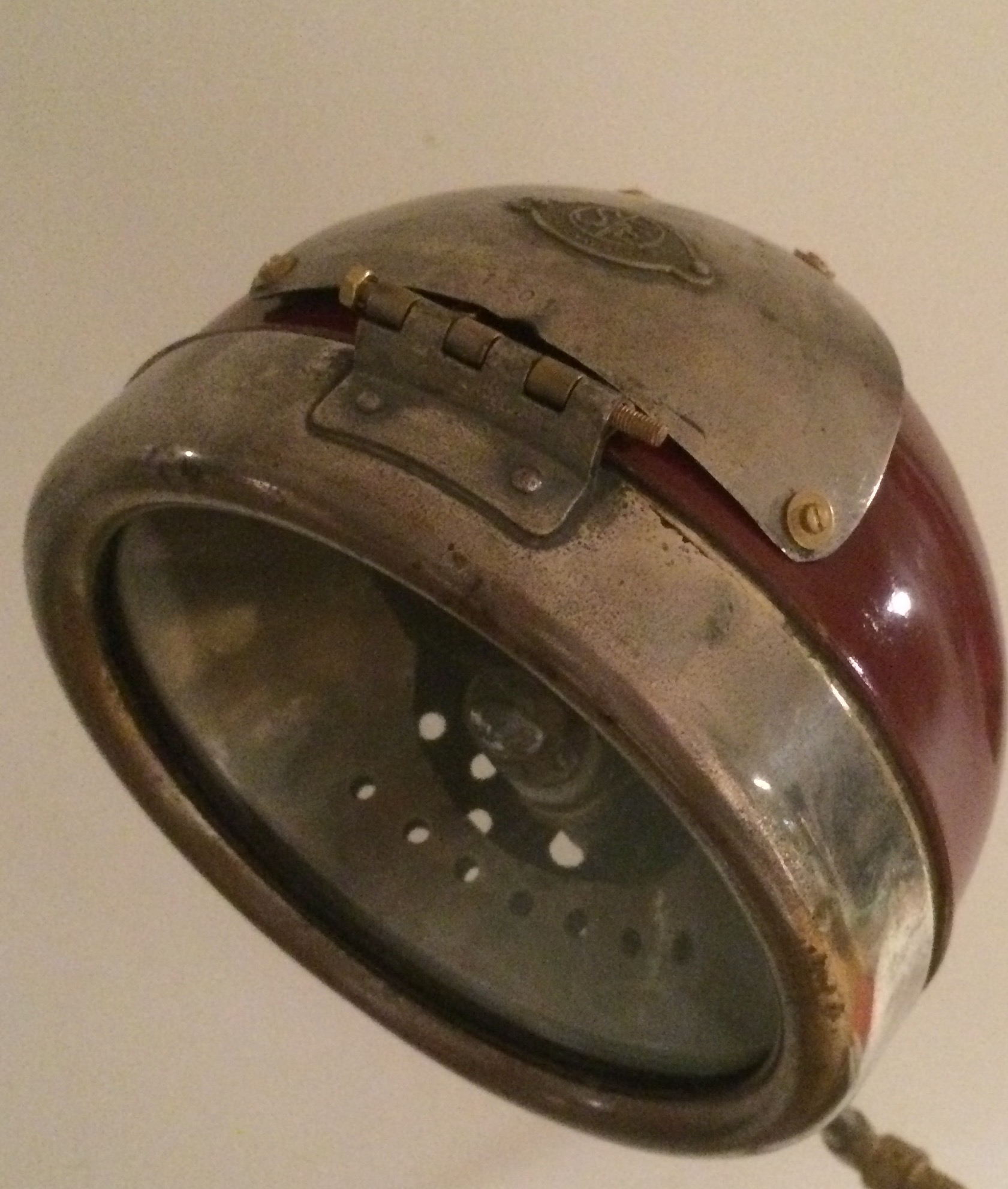Lampe réalisée à partir d'un phare à pétrole qui équipé les automobiles Deudion Bouton fin 19ème début 20ème.